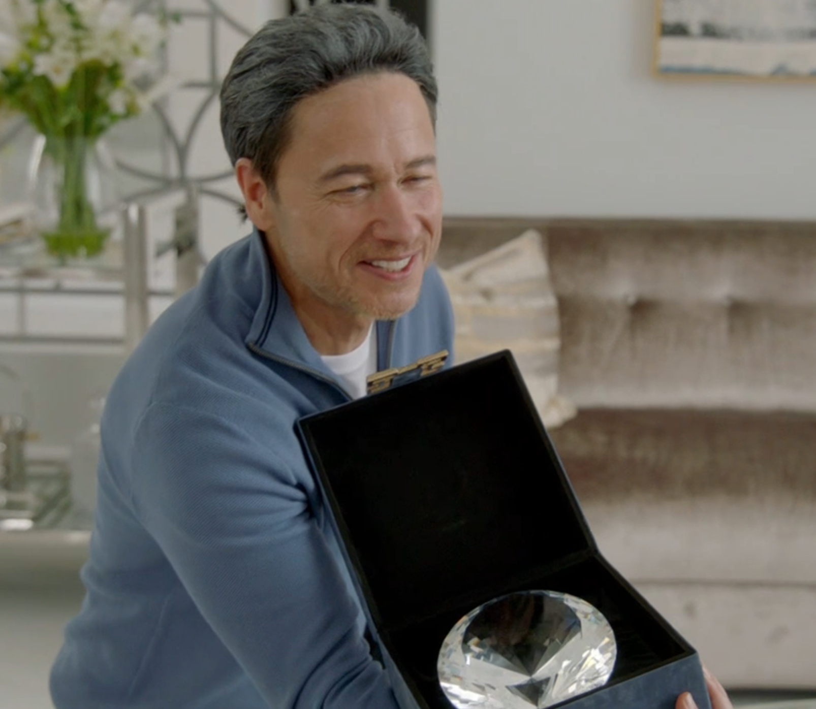 «I thought I’d gift you a giant diamond…» (rendered in exact line: “I thought to gift you a huge diamond… We don’t care how much I paid… 5 million euros. It’s not Louis Morissette who would have given that to Véro,” said Luc (Stéphane Rousseau).