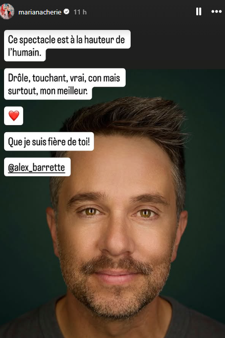 They shared more than just a stage: a real story. Today, even though Mariana Mazza and Alexandre Barrette are no longer a couple, the comedian took care to publicly acknowledge her ex’s work on Instagram. In a message that was both sincere and moving, she wrote: